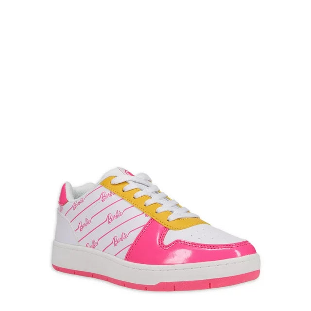 Completa tu estilo deportivo con este nuevo zapato de salón de Barbie. Esta zapatilla clásica ofrece un cierre de cordones con detalles del logotipo de Barbie. ¡Le encantará este zapato de salón de moda protagonizado por su estrella de la moda favorita, Barbie! Las zapatillas cuentan con un material de charol en la parte superior de color rosa pop y ahora están disponibles en tallas enteras para mujer de 6 a 11 americano, ancho normal. Esta nueva cancha está diseñada para el uso diario, perforaciones transpirables en la puntera con lengüeta y cuello acolchados de espuma para mayor comodidad y protección.