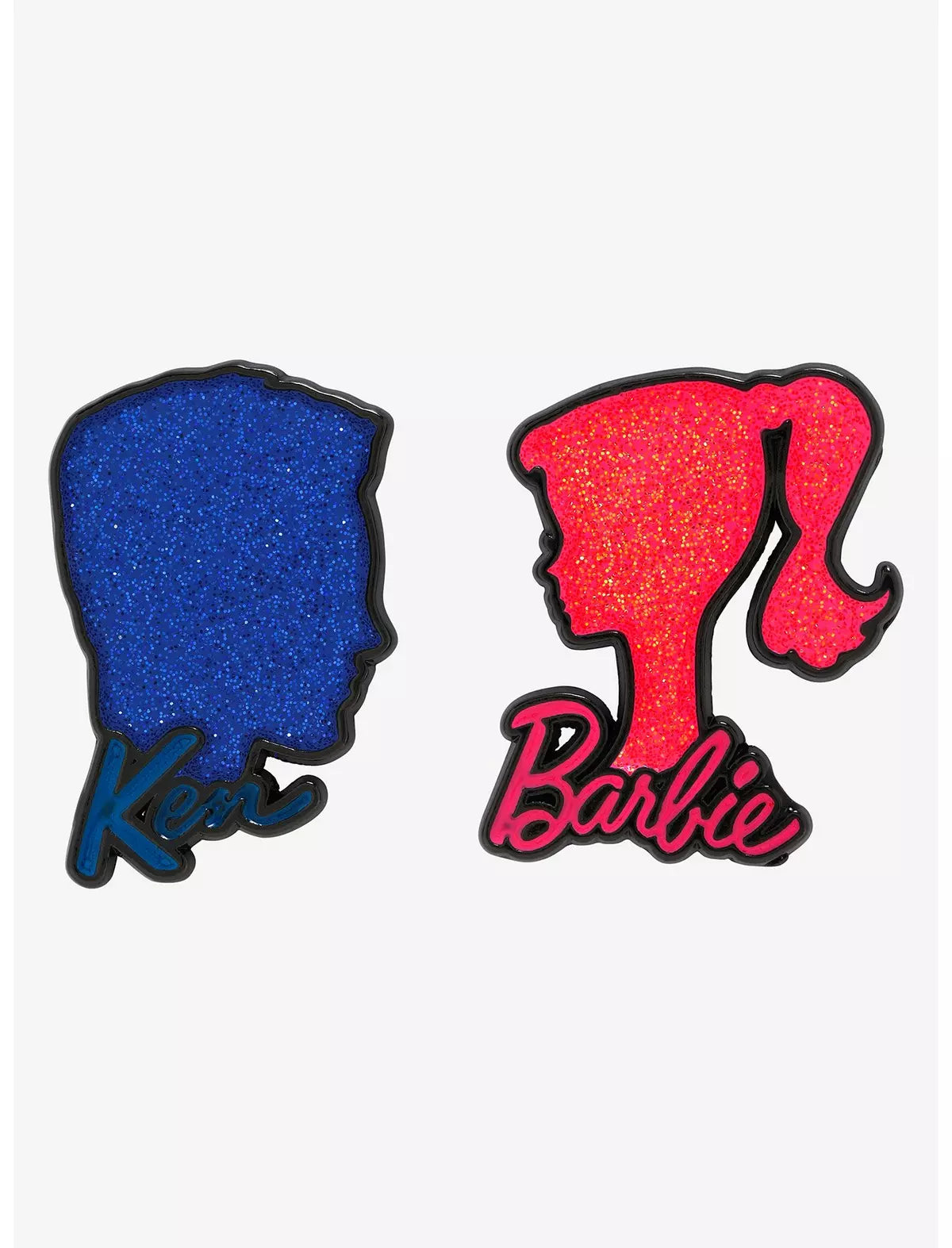 Quédate uno y dale el otro a tu Ken o Barbie o, como haremos nosotros, ¡quédate ambos para ti! El pin de Barbie muestra su silueta rosa brillante encima de su nombre, mientras que la silueta de Ken brilla en azul. ¡Agrega un poco de glamour a cualquier mochila o cordón!
