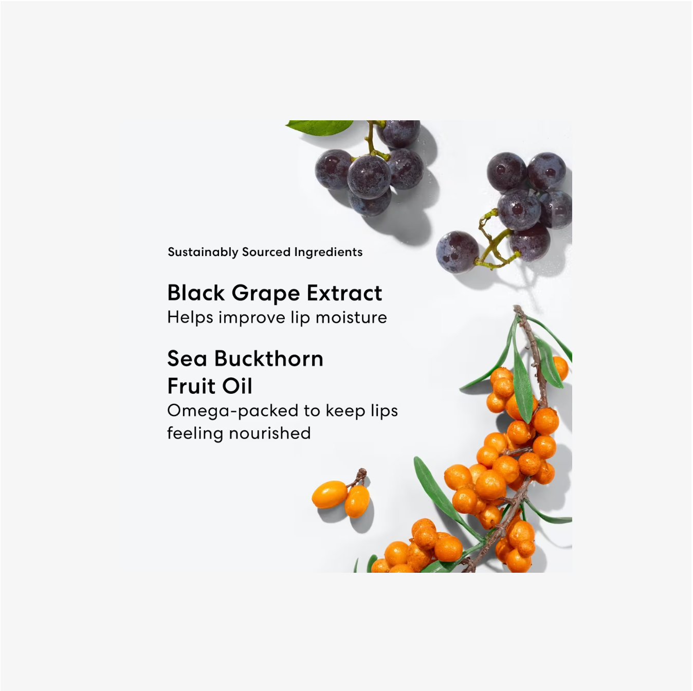 Extracto de uva negra: obtenido de uvas de vino; ayuda a mejorar la hidratación de los labios.