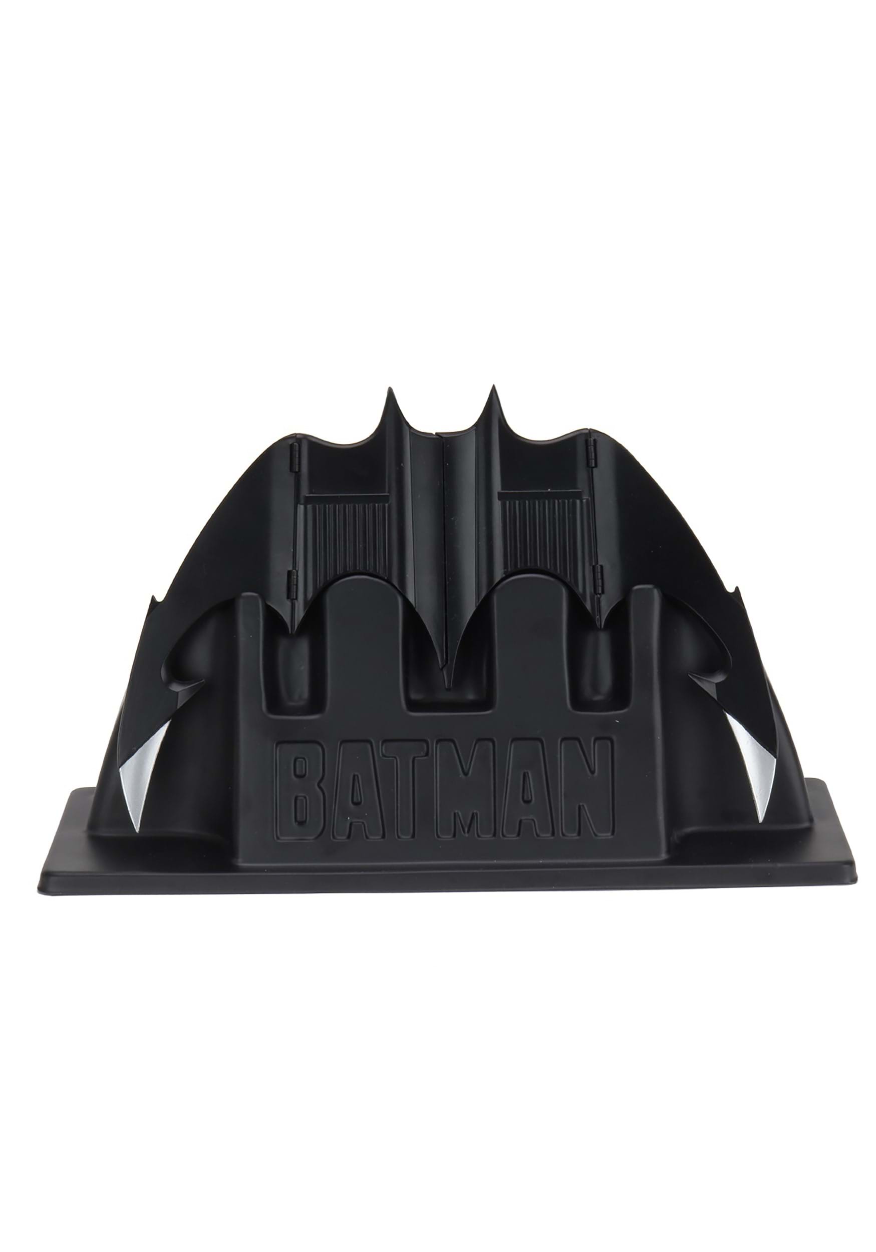 El soporte tiene ranuras contorneadas donde el Batarang encaja con precisión