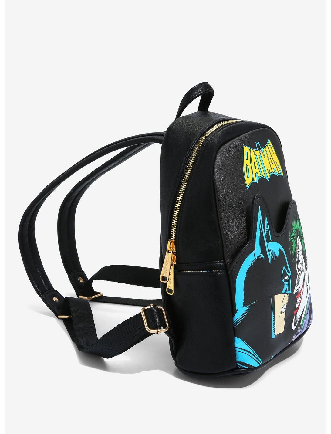 ¡El Caped Crusader de Gotham City y el Clown Prince of Crime están listos para enfrentarse en tu guardarropa de DC Comics como el diseño frontal de esta mini mochila Cakeworthy! Visto como un bolsillo de aplicación vibrante debajo de las letras "Batman" con el logotipo del murciélago, Batman frunce el ceño al Joker mientras el villano luce su icónica sonrisa, ¡lo que hace que un estilo cómico sea un éxito! También cuenta con herrajes dorados, bolsillo interior, correa ajustable para el hombro, forro interior de Batman y un gráfico del símbolo del murciélago en la parte posterior.