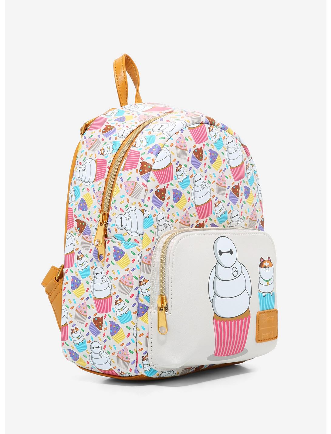 ¿Te diriges a San Fransokyo? ¡Asegúrate de llevar todo lo que necesitas en esta mini mochila Big Hero 6! Relleno con un estampado completo de cupcakes dulces y chispas, ¡también con cupcakes de Baymax y Mochi! Tirantes ajustables, bolsillo frontal con cremallera y bolsillo interior colgante.