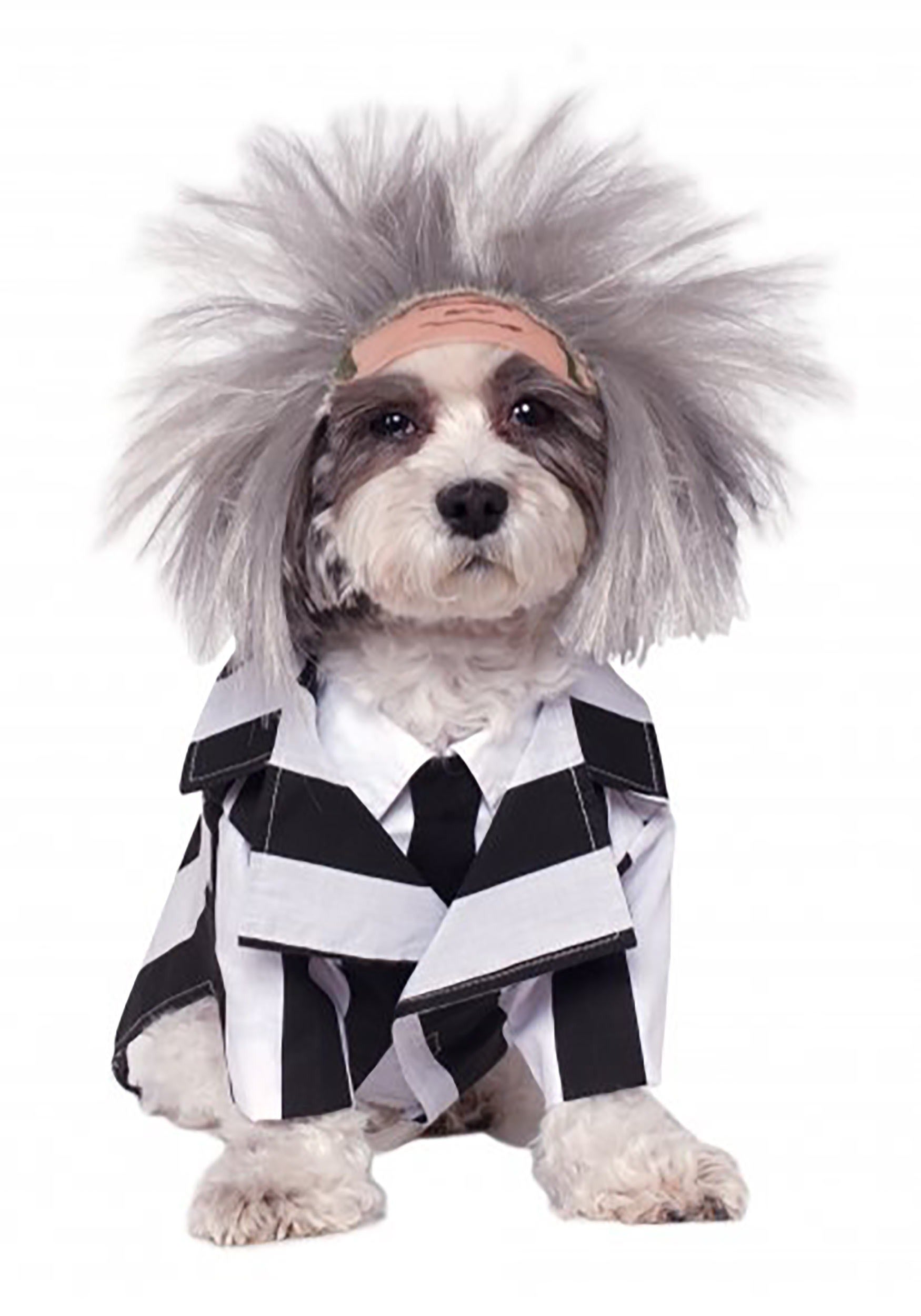 La peluca es de cabello sintético cosido a una tira de tela que se ata debajo de la barbilla del perro.
