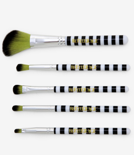 Ya sea que busque un look glamoroso como Miss Argentina o algo más sutil como Lydia Deetz, necesitará un divertido juego de pinceles para sombras de ojos. De Beetlejuice, este juego viene con un portaescobillas de gusano de arena. Cada pincel tiene una punta ombre negra y verde y un mango a rayas blancas y negras.