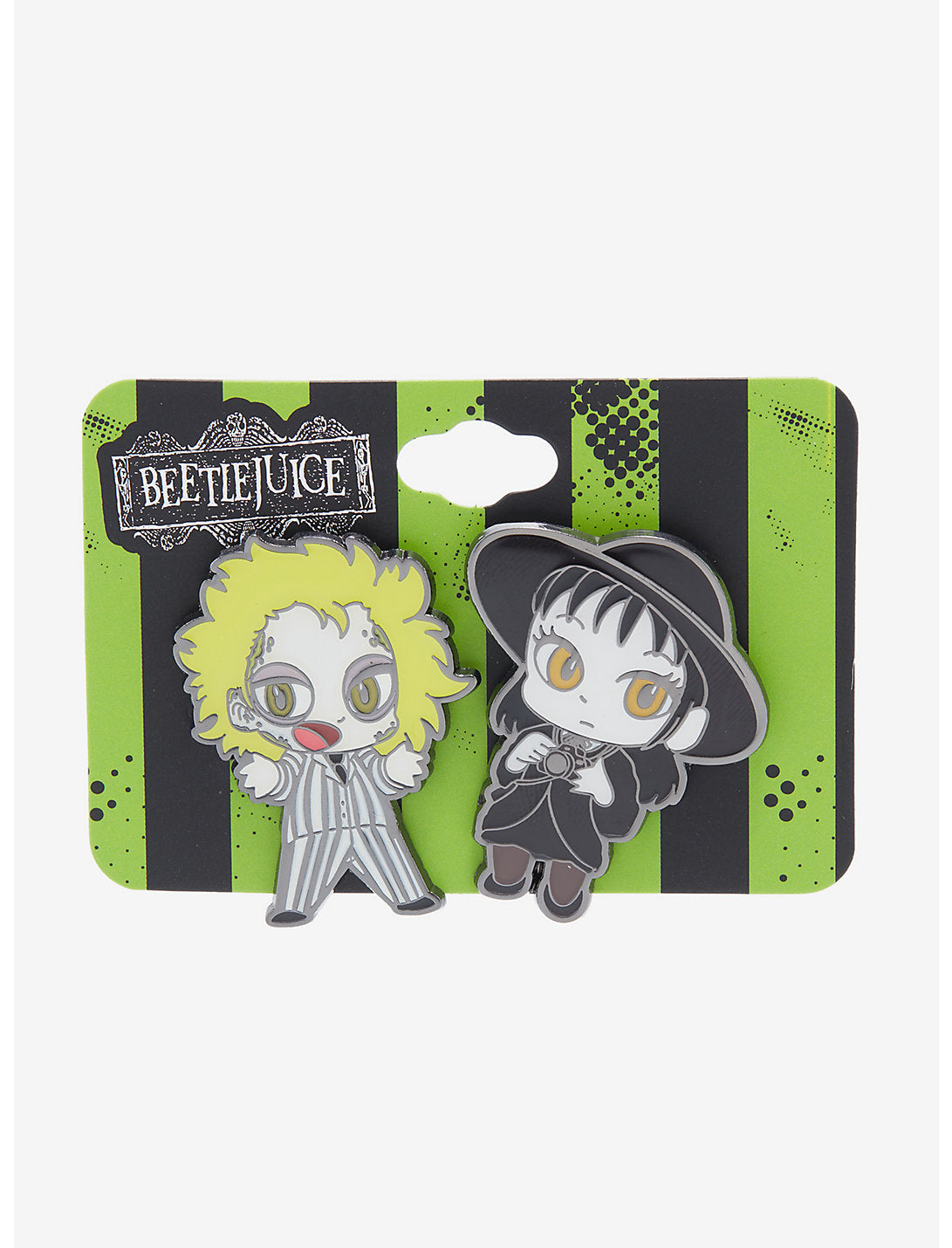 ¡Aww, tal vez Beetlejuice no sea tan malo como un alfiler de esmalte chibi! ... Sin embargo, Chibi Lydia no parece muy segura de eso. ¡Lleva a casa a los dos personajes icónicos con este juego de broches de esmalte!
