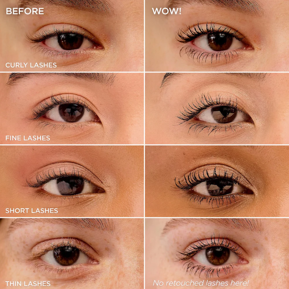 Una máscara que abanica las pestañas de lado a lado, amplifica el volumen y multiplica la apariencia de las pestañas.