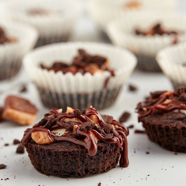 MERIENDA FÁCIL: la mezcla hace 12 tazas de brownie e incluye glaseado blanco, cubierta de galleta desmenuzada y tazas de papel para hornear