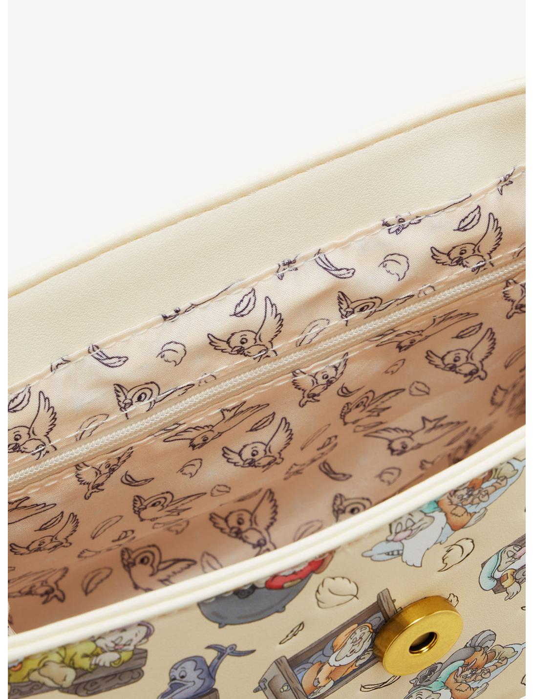 ¡Prepárate para una siesta reparadora con este bolso de mano inspirado en Blancanieves y los siete enanitos! Con un estampado completo de los enanos durmiendo en sus camas y detalles de plumas grabadas, este bolso tiene un cierre a presión, una bolsa interior con cremallera y un llavero extraíble de Grumpy. Este bolso también tiene un asa superior y una correa cruzada extraíble para crear varias formas de representar a sus enanos favoritos en su uso diario.