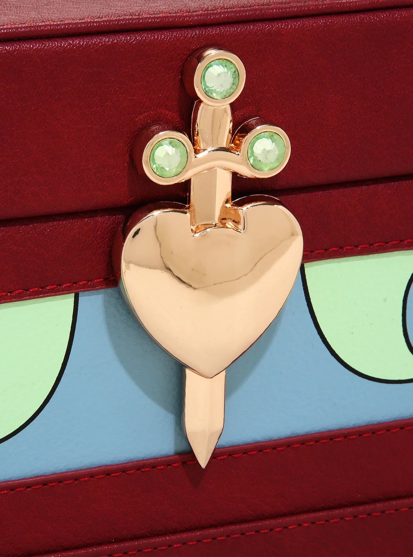 Siguiendo el modelo de la caja que la Reina Malvada le da al Cazador de Blancanieves y los Siete Enanitos de Disney, esta bandolera es perfecta para guardar todos tus artículos más preciados.