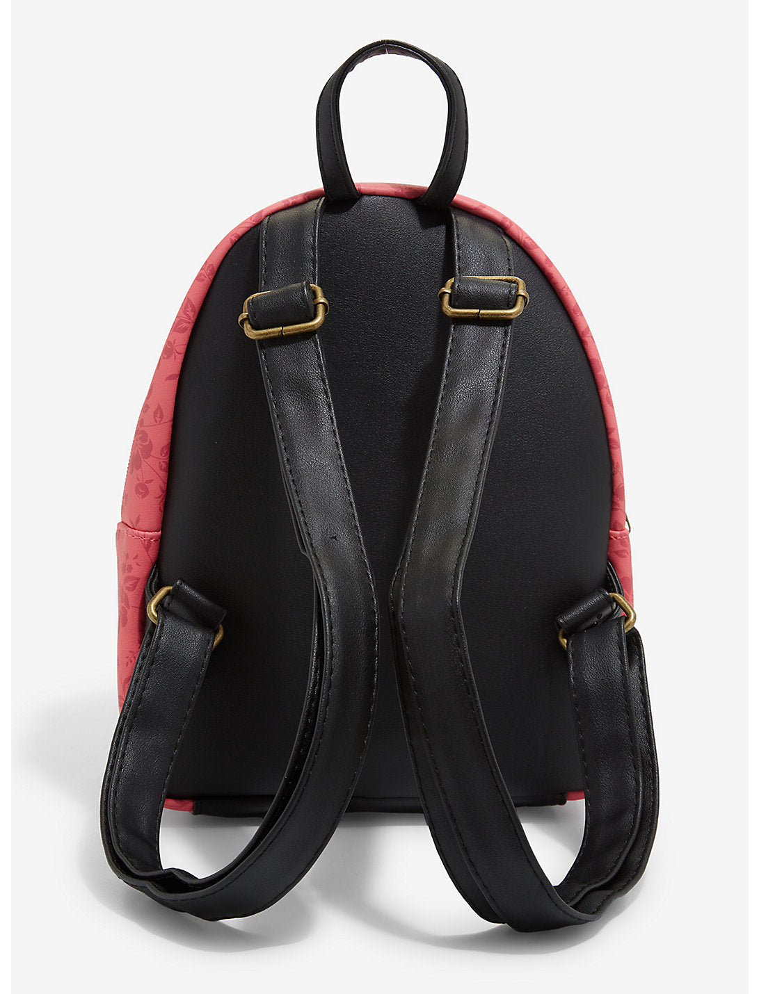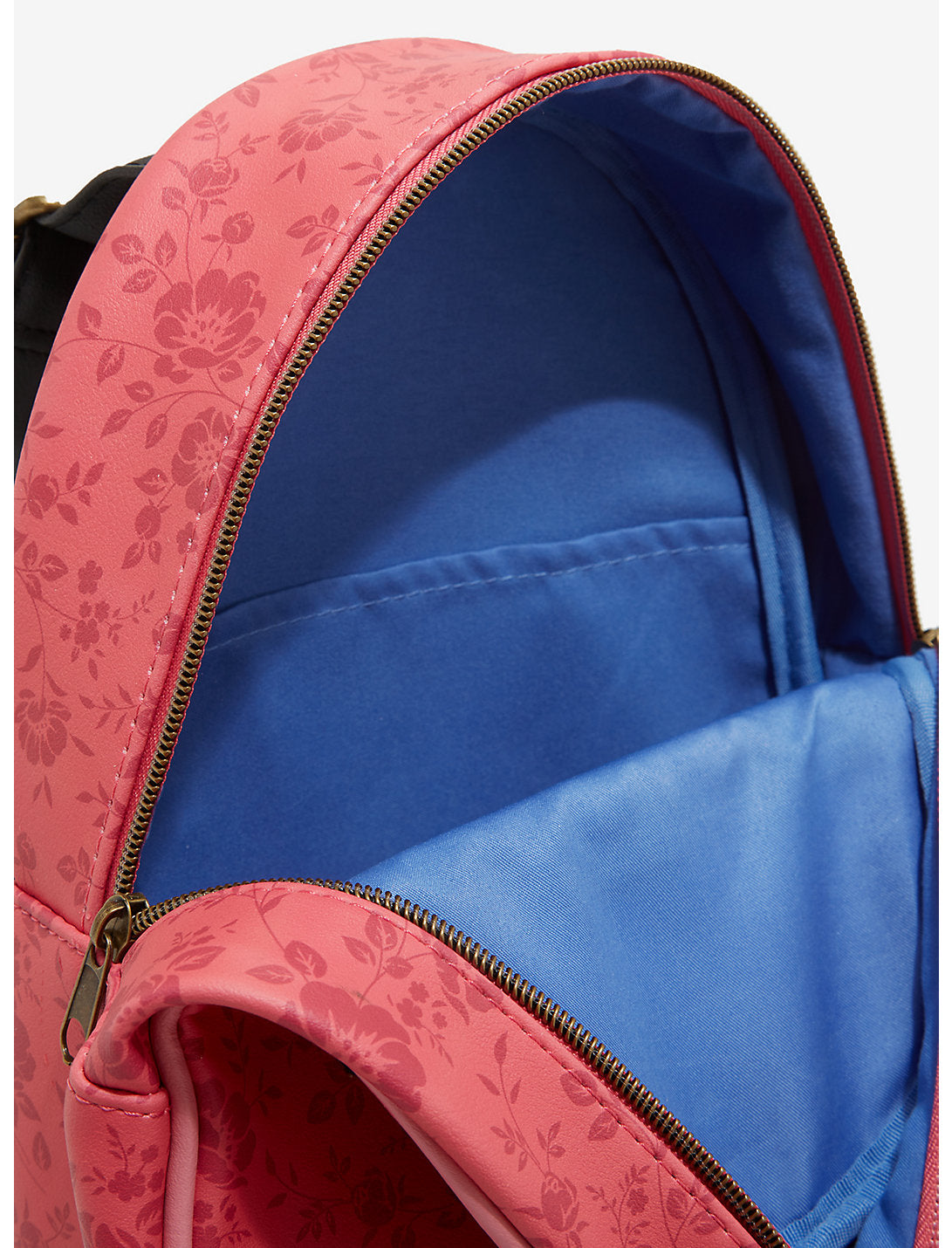 Heigh ho, heigh ho, ¡vamos al cielo de la mini mochila! Inspirada en Blancanieves y los siete enanitos, esta pieza presenta un retrato de Blancanieves en el frente, con sus amigos bluebird cerca de la parte superior y flores en el fondo. Correas ajustables y herrajes en tono dorado.