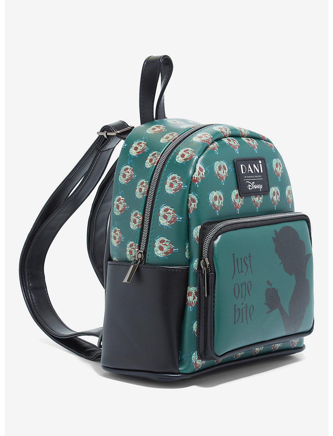 ¡Dale un mordisco a esto! ¿Te sientes un poco villano hoy? ¡Esta mini mochila está llena de diversión diabólica y es perfecta para cualquier viaje! Inspirada en Blancanieves y los siete enanitos, esta mini mochila tiene un estampado de la infame manzana venenosa, con una silueta de Blancanieves y "Solo un bocado" impreso en el bolsillo frontal con cremallera. Correas ajustables, dos bolsillos laterales, herrajes en tono bronce y bolsillo interior con cremallera.
