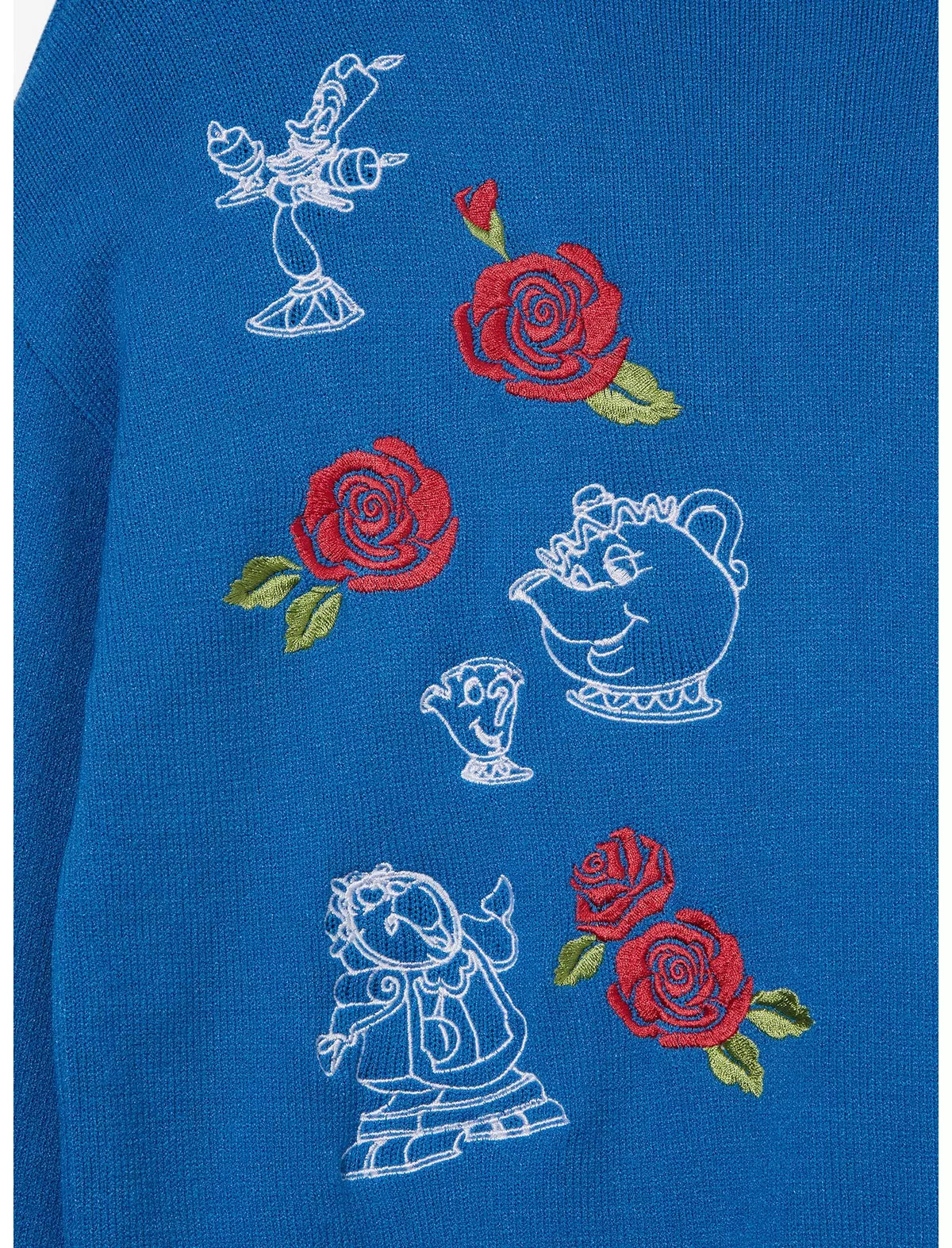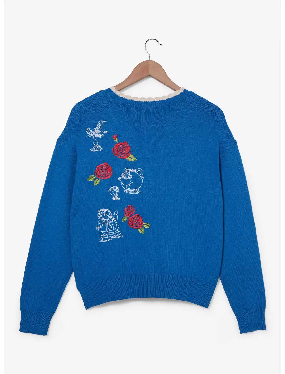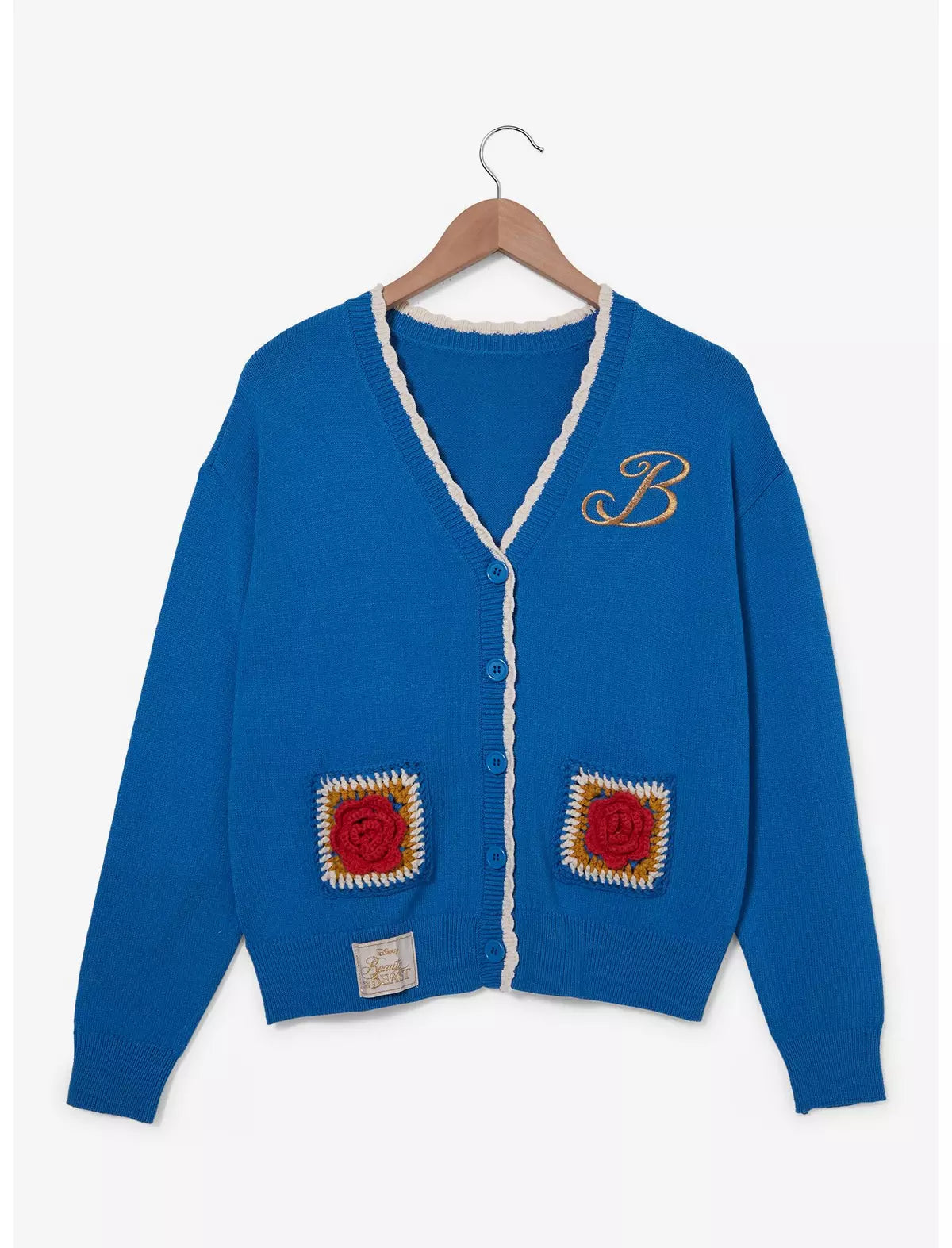 ¡Canaliza tu princesa Disney interior con este cárdigan de La Bella y la Bestia! La inicial de Bella está bordada en la parte delantera, mientras que rosas de ganchillo adornan los bolsillos. ¡No te pierdas el diseño bordado de los objetos encantados en la espalda!