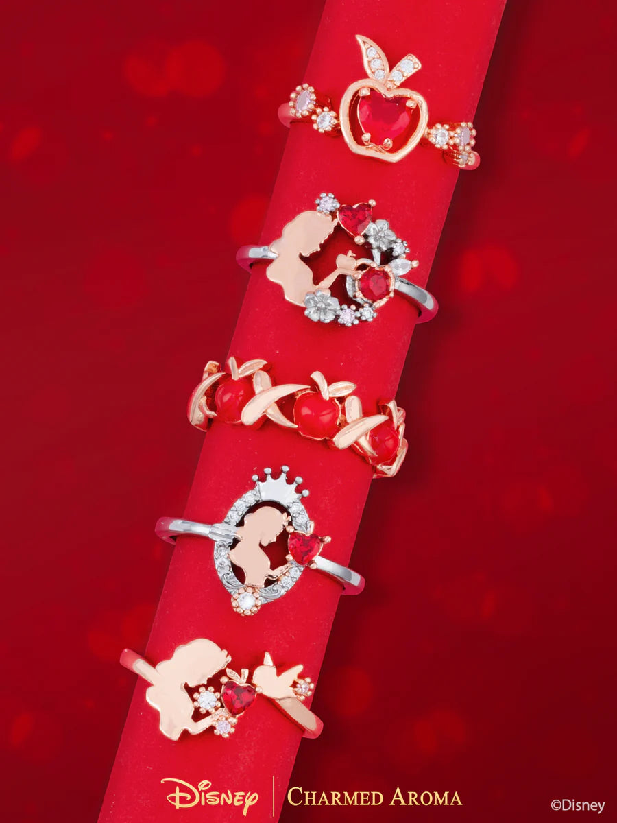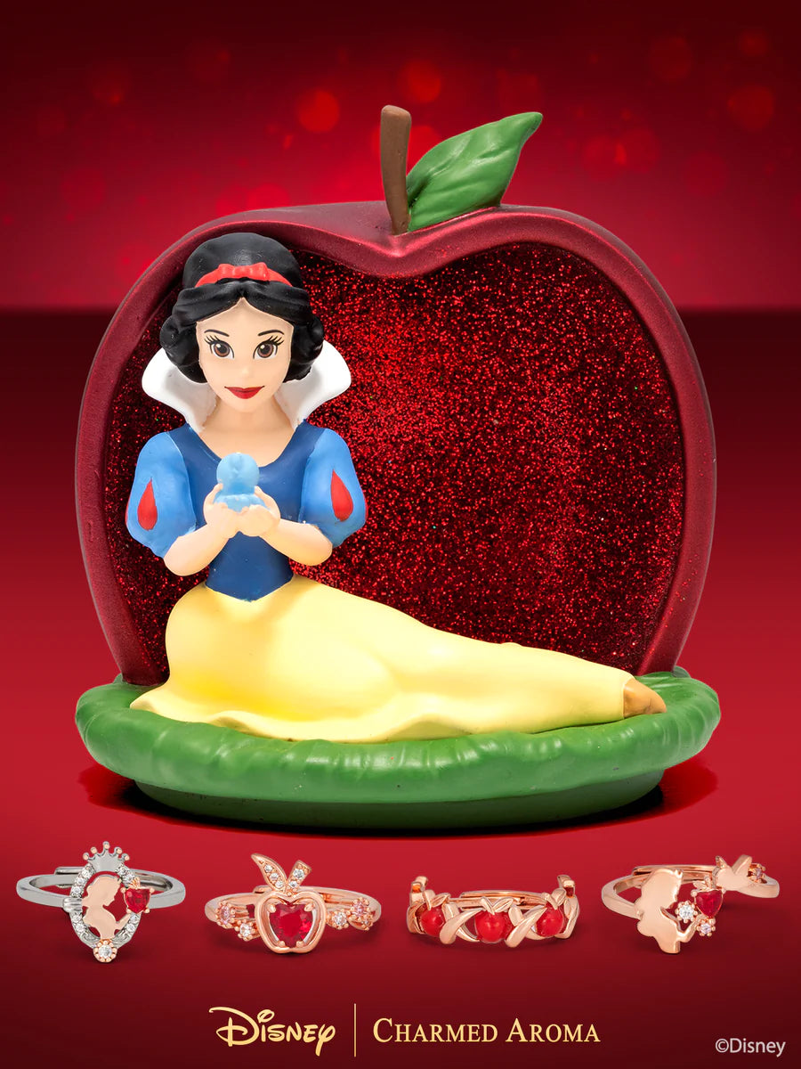 ¡Encuentra un anillo ajustable de Blancanieves inspirado en la icónica película de Disney® Blancanieves y los siete enanitos dentro de esta vela joya!