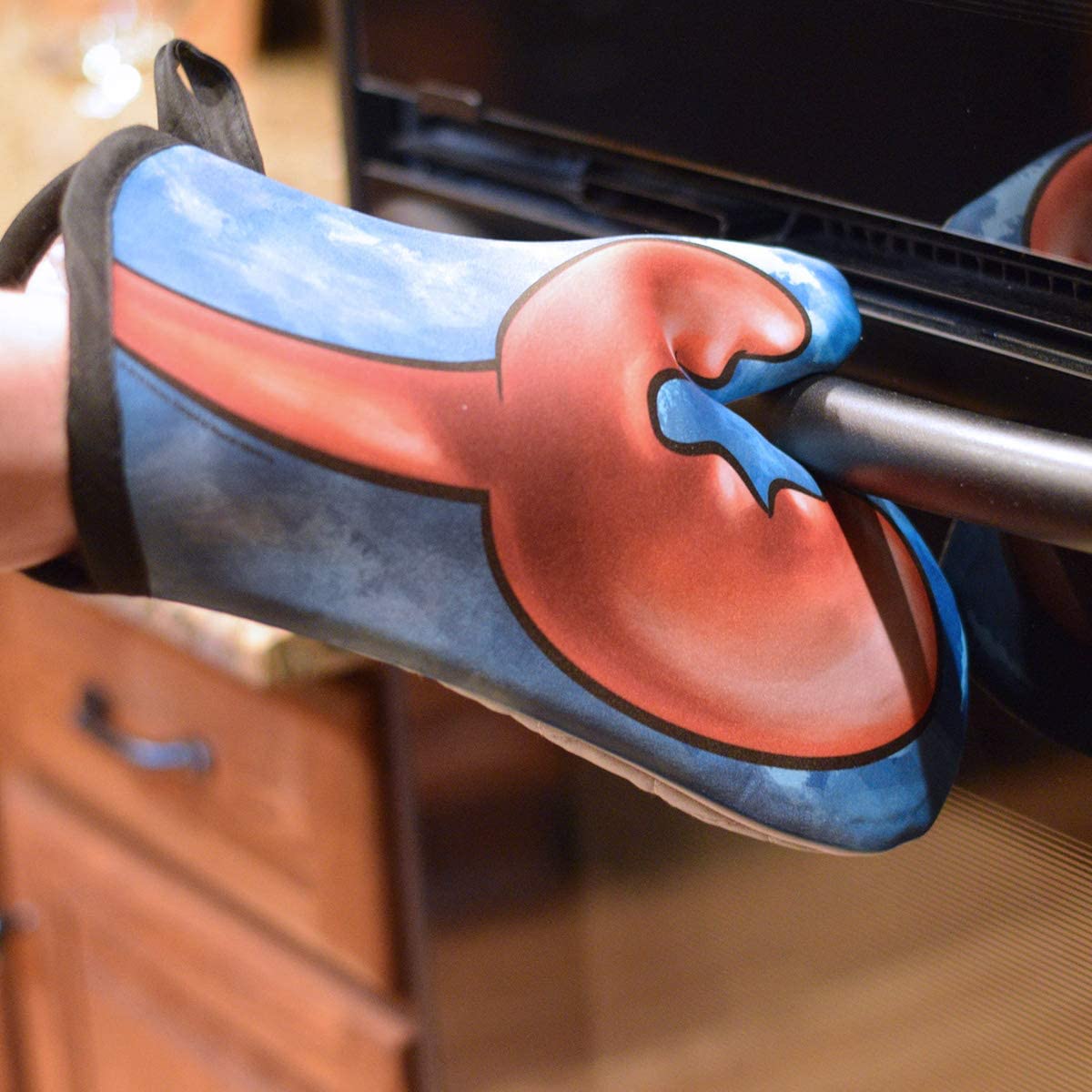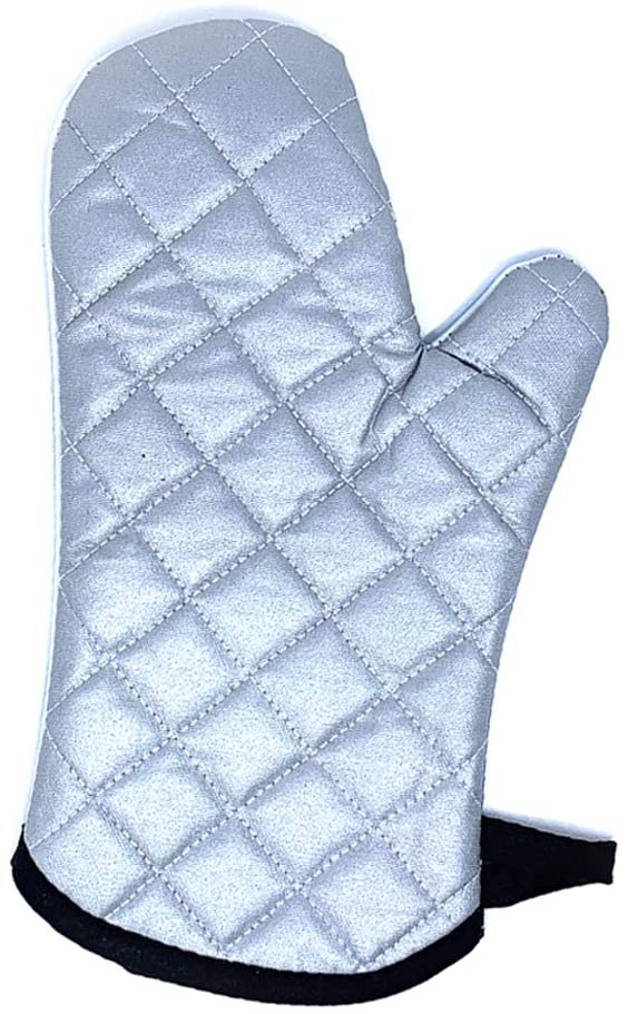 - Manopla de horno de 8.6 in de ancho x 14.0 in de largo con parte delantera de neopreno y parte trasera acolchada resistente al calor