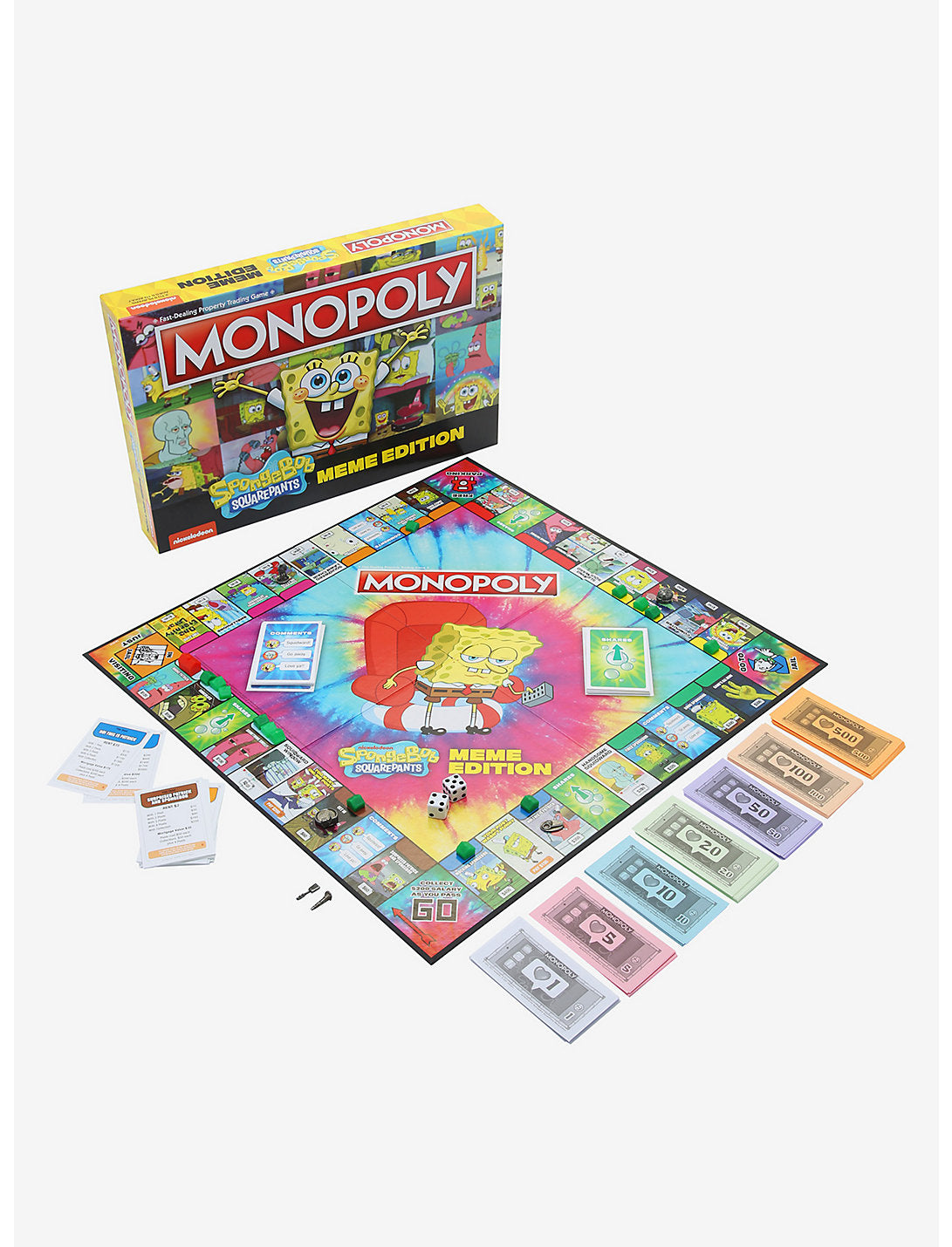 ¡Necesitarás un poco de imaginación seria para encontrar un juego más #relatable que este! ¡Juega al Monopoly con un toque diferente con esta versión Bob Esponja Edición Meme! Compra, vende e intercambia las imágenes más divertidas y famosas en Internet de esta querida serie. Aprovecha las propiedades para canalizar a "Patricio salvaje", o haz como "Bob Esponja burlón" mientras pagas el alquiler. Coloque una silla de jardín para los sanos contratiempos que se esconden detrás de las tarjetas Comentarios y Acciones. ¡Simplemente acumula tantos Me gusta como puedas para arruinar a tus Bubble Buddies y ganar!
