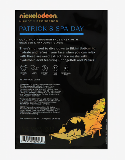 ¡Prepárate para tu mejor cara! ¡No es necesario sumergirse en Fondo de Bikini para hidratarse y refrescarse la cara cuando puede relajarse con la mascarilla de proteína marina de HipDot con ácido hialurónico, inspirada en Bob Esponja!