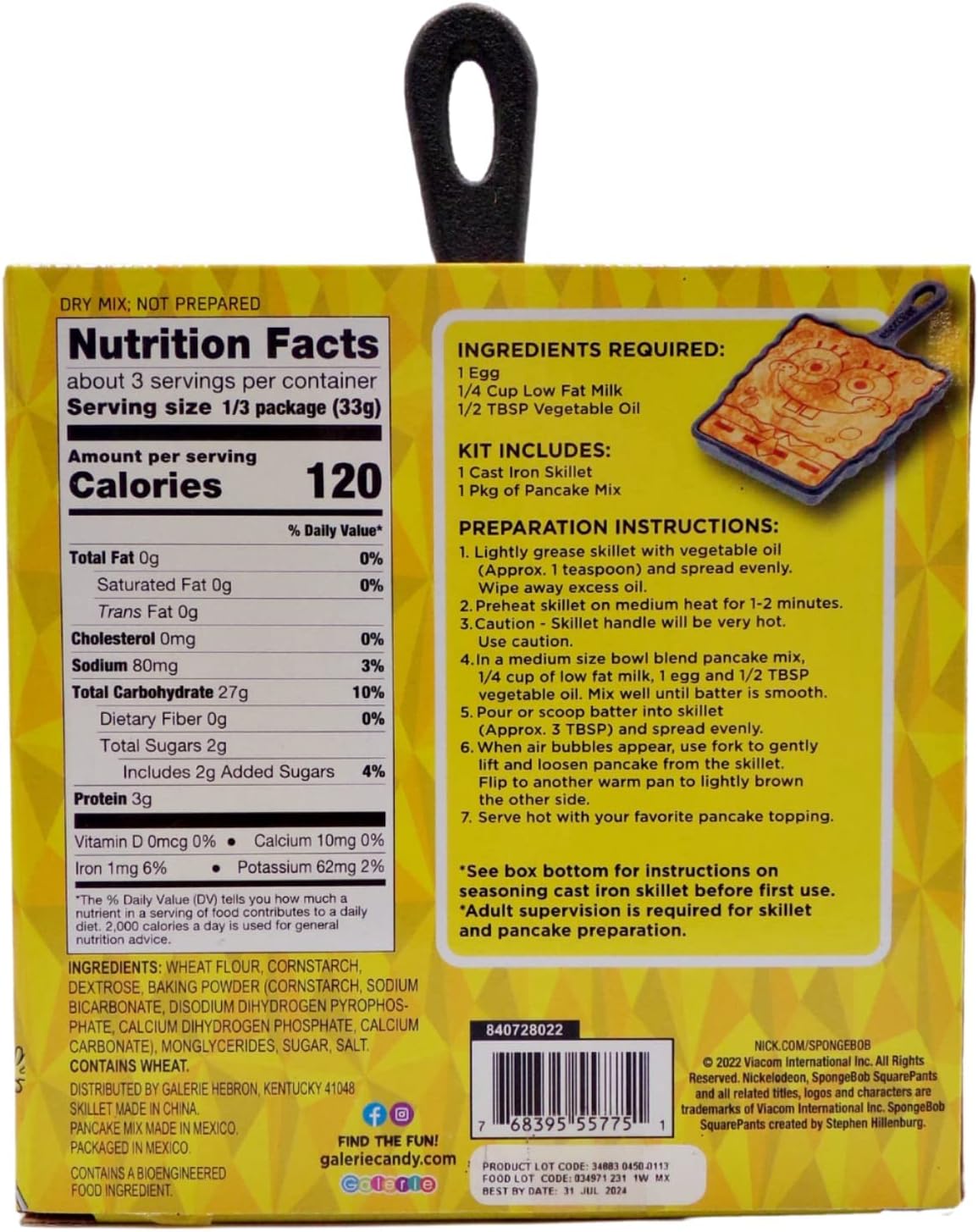 - La sartén para panqueques PANCAKE MIX viene con un paquete de 3.52 onzas de mezcla para panqueques.