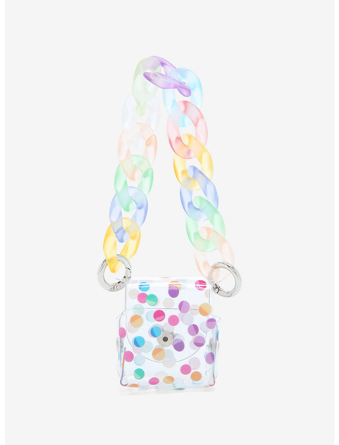 Tus melodías hacen una declaración sobre quién eres. ¿No deberías tener una funda a juego? Este es transparente y con cierre de botón deportivo, lunares y una gruesa cadena de arcoíris.
