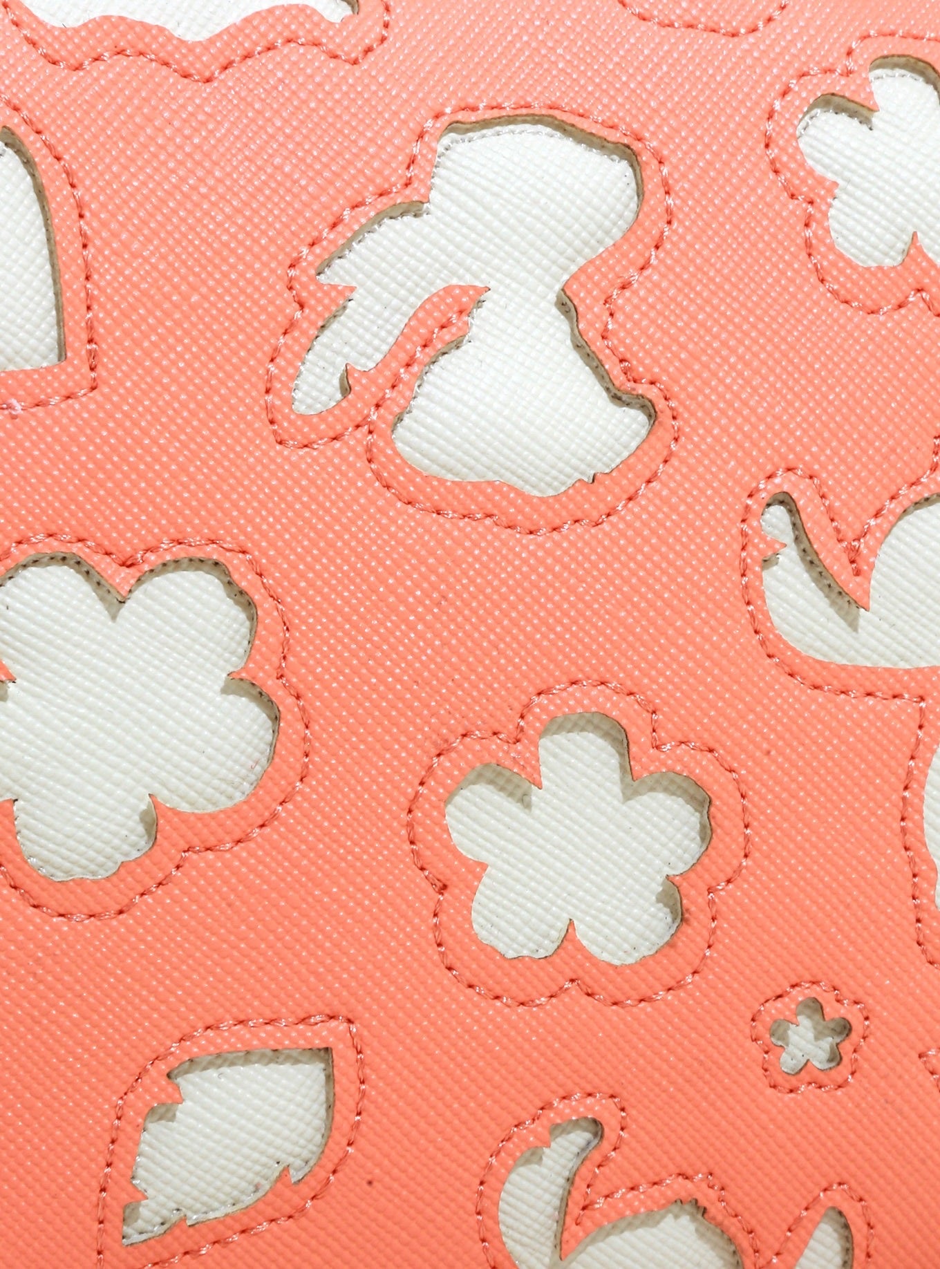 Este bolso de piel sintética tiene un diseño recortado formado por la silueta y la flor de Stitch.