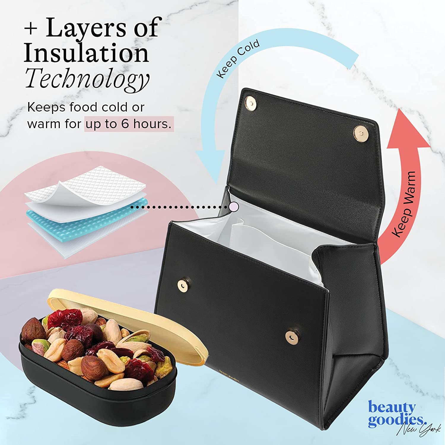- ✨ Elegante piel vegana: ahora puedes disfrutar de una lonchera aislada premium sin comprometer la calidad o el estilo. Es un hermoso regalo para mujeres especiales en tu vida, ideal para madres, estudiantes y profesionales que viven la vida sobre la marcha.