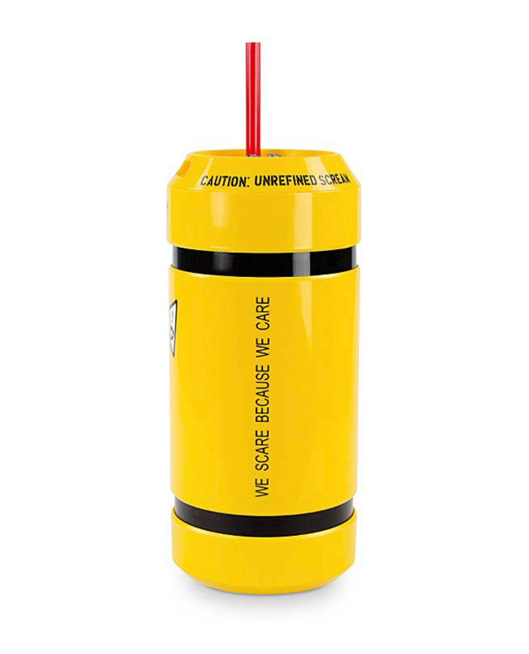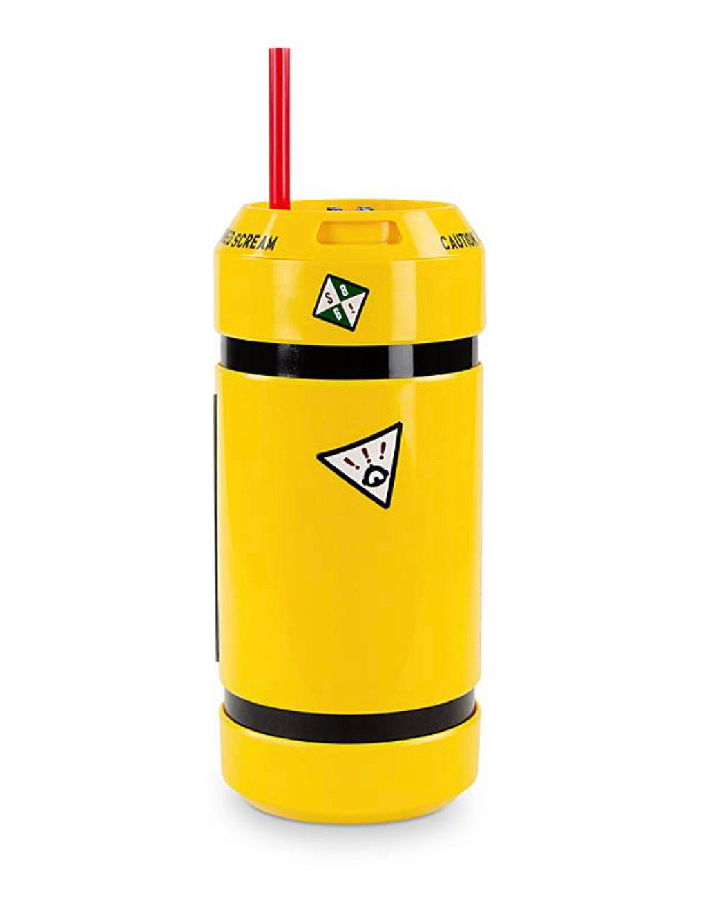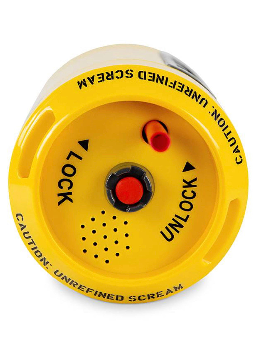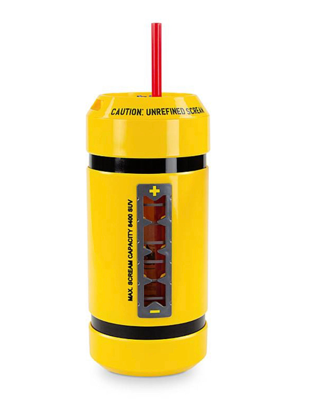 Disfruta de una bebida fría y gritos escalofriantes con esta botella de agua tremendamente divertida. Basada en los botes de gritos que utilizaron los Scarers en Monsters, Inc. para almacenar la energía de los gritos de los niños, esta réplica puede liberar los "gritos sin refinar" cuando se abre la tapa.