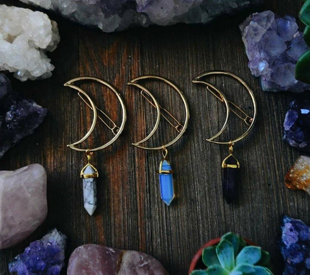 Adquiere este hermoso broche de luna con cuarzo a un increible precio !!