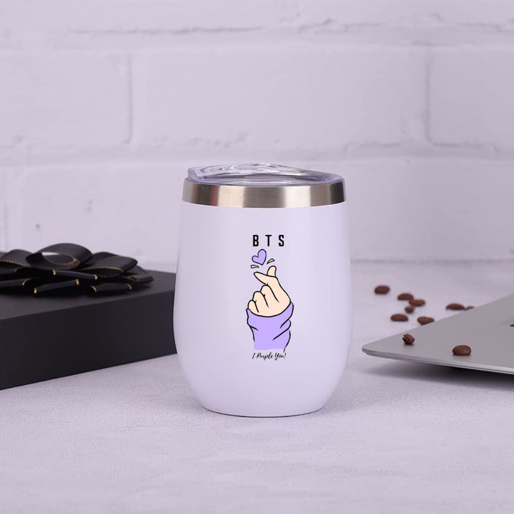 - Construcción prémium: esta taza BTS tiene una capacidad de 12 onzas y está hecha de acero inoxidable 18/8 de grado alimenticio con una capa en polvo de calidad superior que minimiza la decoloración y el astillado. También viene con una tapa deslizante para beber fácilmente y protege contra salpicaduras.