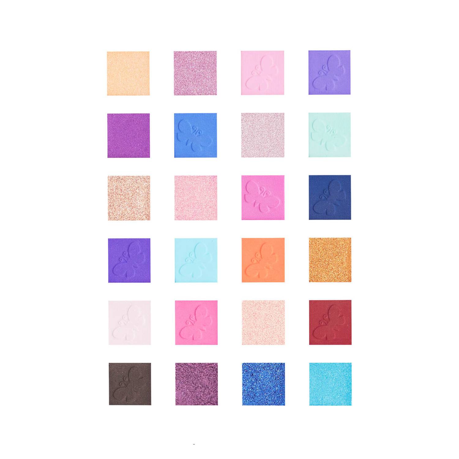 Esta paleta, dividida entre los dos mundos, está grabada con las hermosas mariposas de Emily e incluye tonos PARA PLAN: un melocotón mate cálido, VAN DORT, un púrpura intenso brillante y PASTOR GALSWELLS, un dorado reluciente.