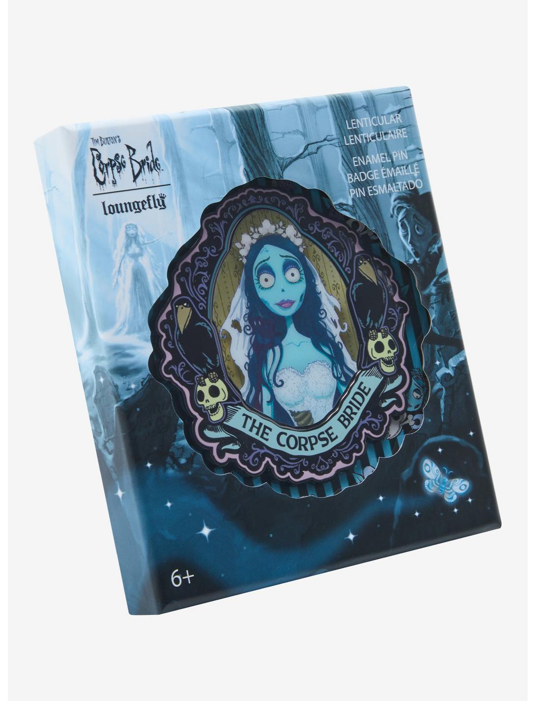 ¡Aporta un poco de moda no-muerta a tu colección con este pin inspirado en La Novia Cadáver! Con un retrato lenticular de Emily enmarcado por detalles de cuervo y calavera y las letras "La novia cadáver", un retrato muestra a Emily sonriendo y el otro la muestra posando sosteniendo su ojo. Este pin móvil de edición limitada es perfecto para los fanáticos de la película que buscan agregar un toque espeluznante a su chaqueta, mochila o tablero de corcho.
