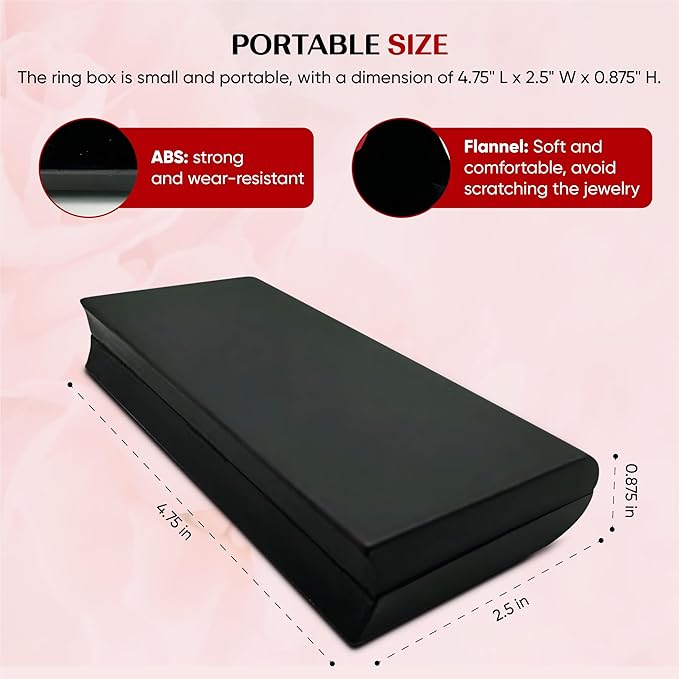 - Tamaño portátil: la caja de anillos es pequeña y portátil, con una dimensión de 4.7 pulgadas de largo x 2.5 pulgadas de ancho x 0.8 pulgadas de alto.