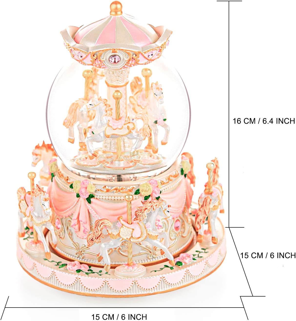 - Regalo de carrusel de bola de nieve: nuestra bonita caja de música de carrusel es el mejor regalo para esposa, novia, novio, niños, novia, novia, bebé, mamá, amantes, niños, amigos o familiares en cumpleaños, Navidad, Halloween, día de San Valentín, boda, fiesta, aniversario, Año Nuevo, Acción de Gracias u otro regalo de festivales.