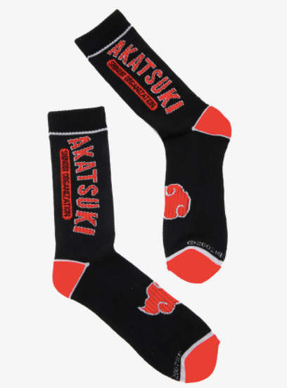 ¡Siéntete como si estuvieras flotando en una nube cuando camines con estos calcetines de Akatsuki! Inspirados en Naruto Shippuden, estos calcetines tienen un gráfico de "Organización Akatsuki Shinobi" en los tobillos y el símbolo de la nube Akatsuki en el pie. También cuenta con detalles rojos en el talón y la puntera.