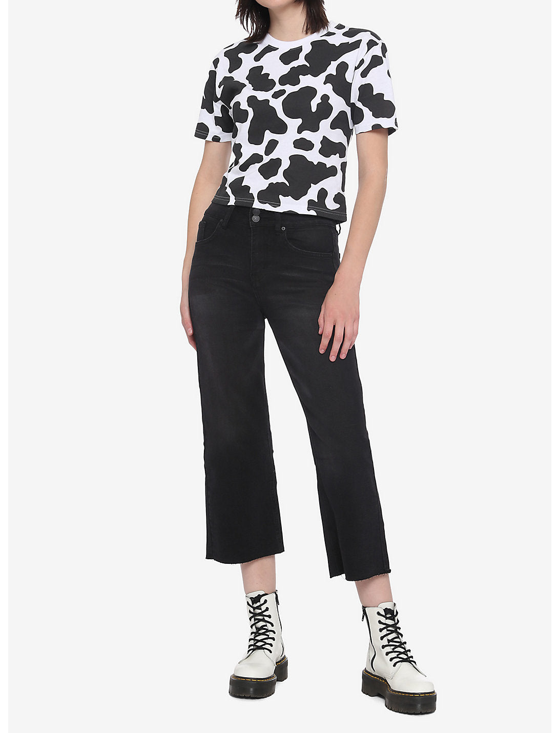 ¡Todas tus otras camisetas se pueden cambiar! Ahora se trata de la huella de la vaca. Esta camiseta corta y cuadrada combina a la perfección con un par de pantalones de cintura alta.