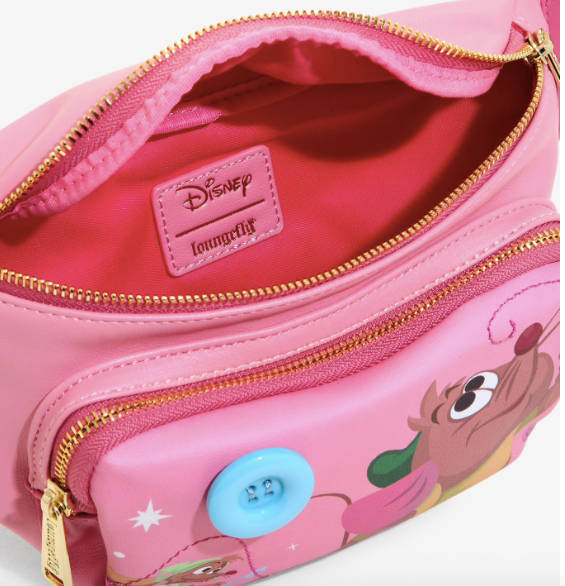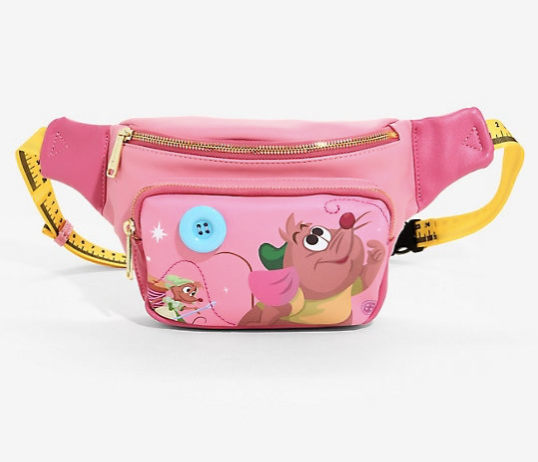 ¡Gus Gus podría haber usado esta cangurera para almacenar su montón de granos de maíz! Estamos obsesionados con el hilo de coser bordado y los detalles de los botones, que representan a Gus Gus y Suzy mientras preparan un vestido para Cenicienta.