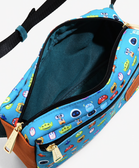 Disney • Los queridos personajes de Pixar han estado allí para nosotros a través de todas las risas y lágrimas. No irán a ningún lado pronto, ¡mantenlos a tu lado en esta cangurera! Cuenta con una parte inferior de piel sintética, bolsillo frontal con cremallera, compartimento principal con cremallera, forro interior de color verde azulado y correa ajustable con hebilla del cinturón de seguridad.