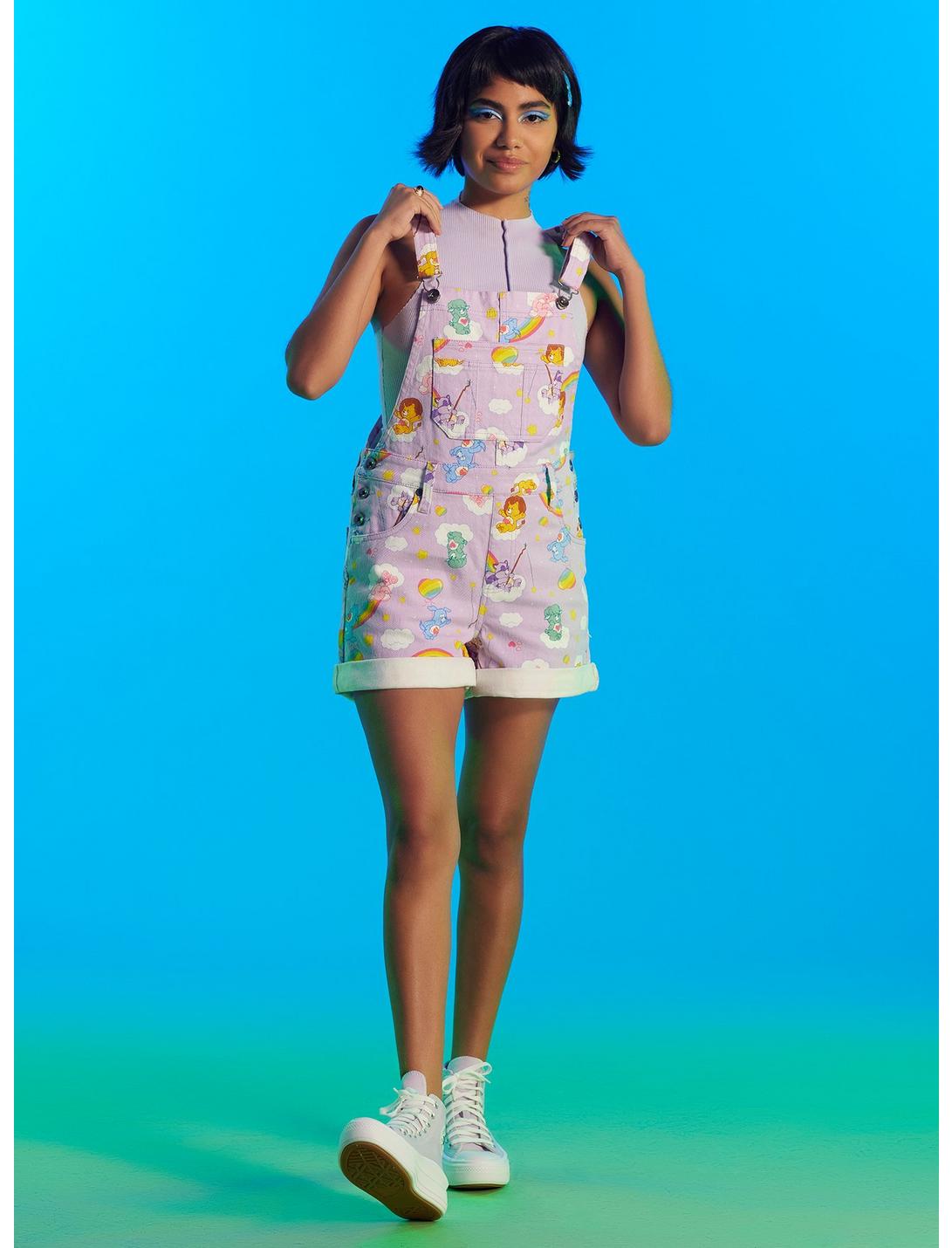 ¡Pasea por Care-A-Lot con estilo! ¡Diviértete bajo el sol entre nubes hinchadas y arcoíris con estos cómodos pantalones cortos, con un estampado completo de tus primos Care Bear favoritos, nubes, arcoíris y más! Viene con correas ajustables, bolsillos traseros y en la cadera, bajos con puños y seis botones laterales.