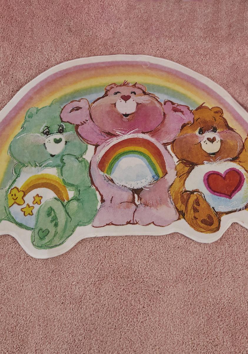 Alfombra de dormitorio Rainbow Squad porque no te metas con estas bellezas. Esta alfombra arcoíris Care Bear tiene una construcción de terciopelo y un respaldo antideslizante.