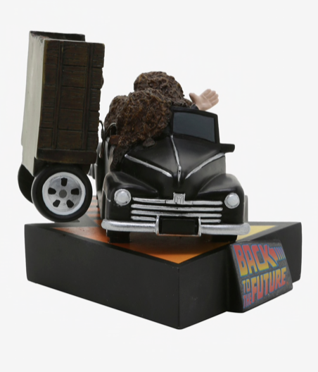 Esta estatua de movimiento premium captura el primer encuentro cuando el convertible de Biff se llena hasta el borde, cubriendo a sus ocupantes, después de una persecución por la Plaza del Palacio de Justicia.