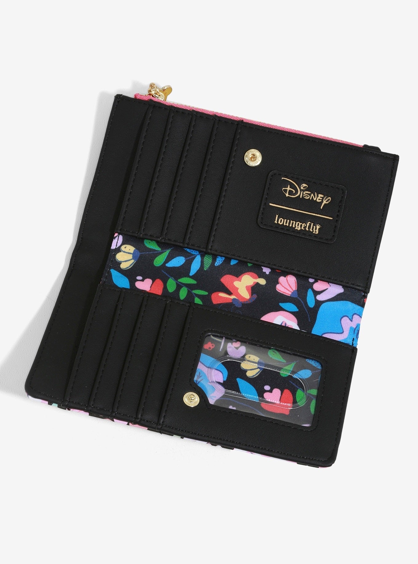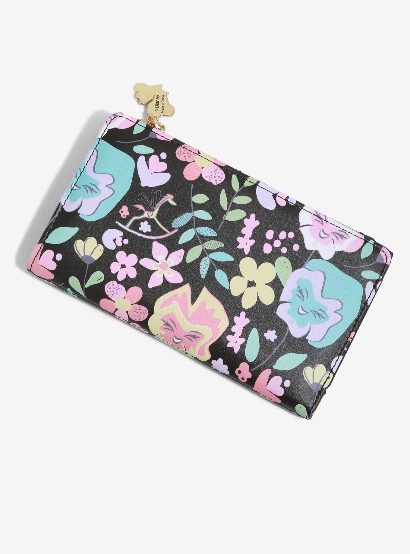 ¡Las flores parlantes de Alicia en el país de las maravillas de Disney te darán una serenata con esta billetera de piel sintética con bolsillo con cremallera, pliegue de billetes, ranura para identificación transparente, 7 ranuras para tarjetas y cierre con botón a presión!