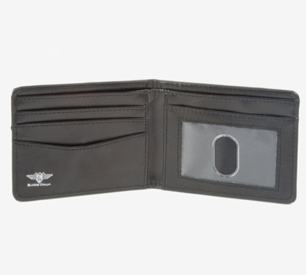 Esta impresionante billetera plegable para hombres está hecha de cuero vegano de primera calidad. Mide 4.0 "x 3.5" x 0.5 ", y presenta el billetero estándar, 5 ranuras para tarjetas y un portatarjetas con ventana.