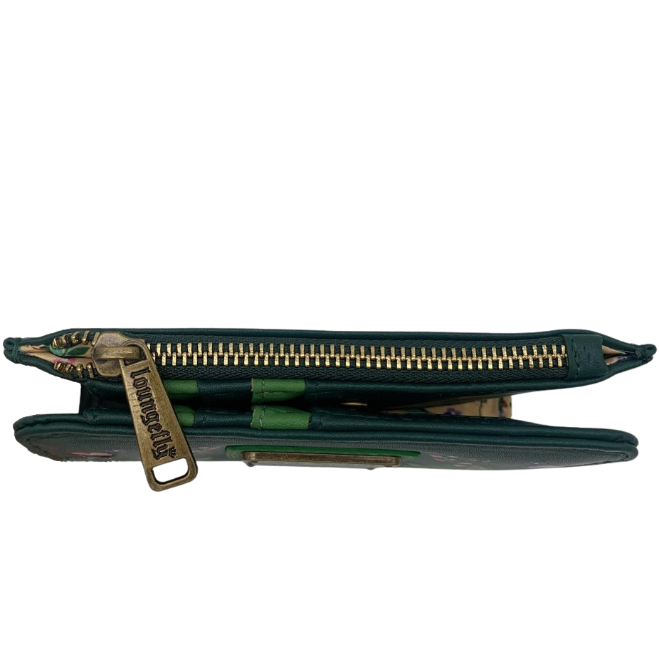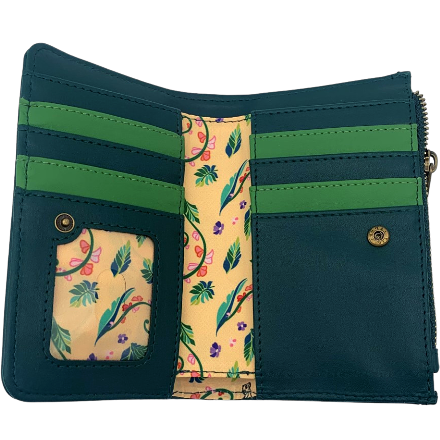Lleva a Nala a tu próxima aventura con esta exclusiva cartera Nala Scene. En la parte frontal, la cara de Nala sonríe, rodeada de un elegante paisaje. La parte trasera incluye el logotipo de Loungefly y un estampado floral. Esta cartera plegable es un accesorio ideal para cualquier look Disney.