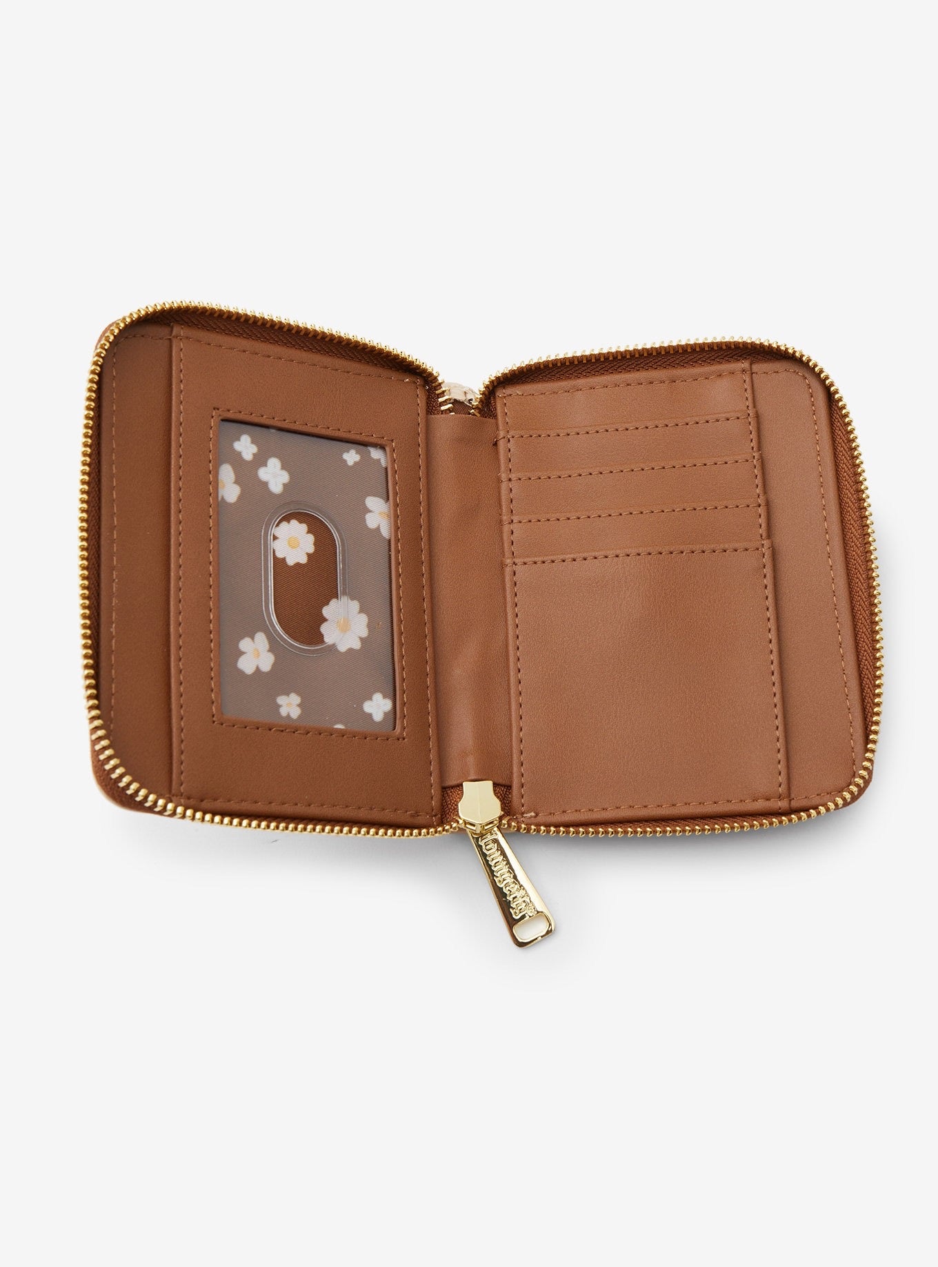 Esta billetera de piel sintética con cremallera presenta ilustraciones impresas de chibi inspiradas en el clásico de Disney, detalles bordados y grabados, una placa de la marca esmaltada y herrajes en tono dorado. Ábrela para revelar varias ranuras para tarjetas, forro con estampado de flores y una ranura para identificación transparente.