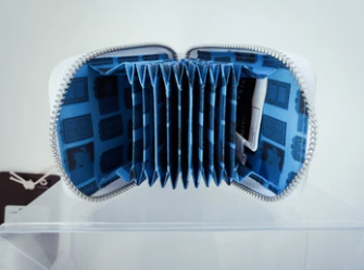 Cuenta con detalles impresos, cierre de cremallera, un forro azul a juego