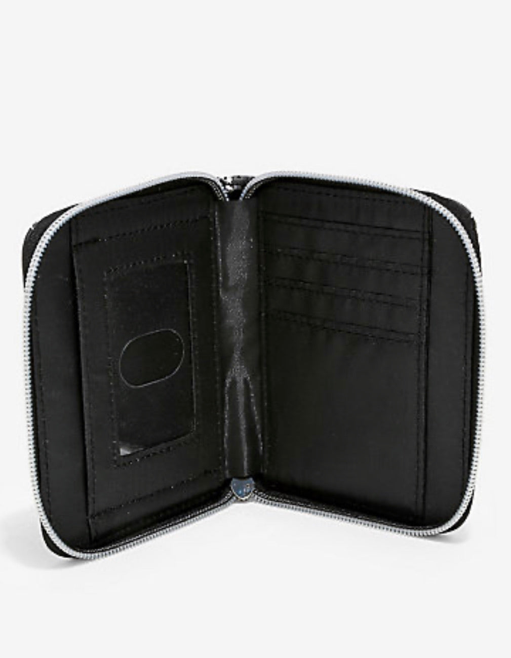Con cierre de cremallera, 4 ranuras para tarjetas y una ventana de identificación transparente.