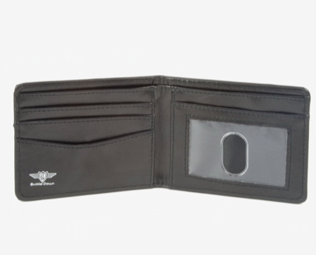 Esta impresionante billetera plegable para hombres está hecha de cuero vegano de primera calidad. Mide 4.0 x 3.5 x 0.5 pulgadas, y presenta el billetero estándar, 5 ranuras para tarjetas y un portatarjetas con ventana.