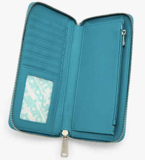 Ábrelo para revelar 3 compartimentos para billetes, un bolsillo con cremallera, 7 ranuras para tarjetas y una ranura de identificación transparente.