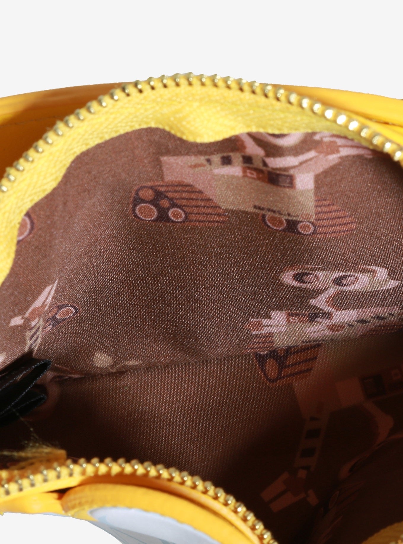 Protagonizada por los dos tortolitos de Disney • Pixar's WALL • E, esta pulsera de cuero sintético presenta un lindo tirador de cremallera de hoja pequeña, así como detalles impresos, apliques y placa de metal.