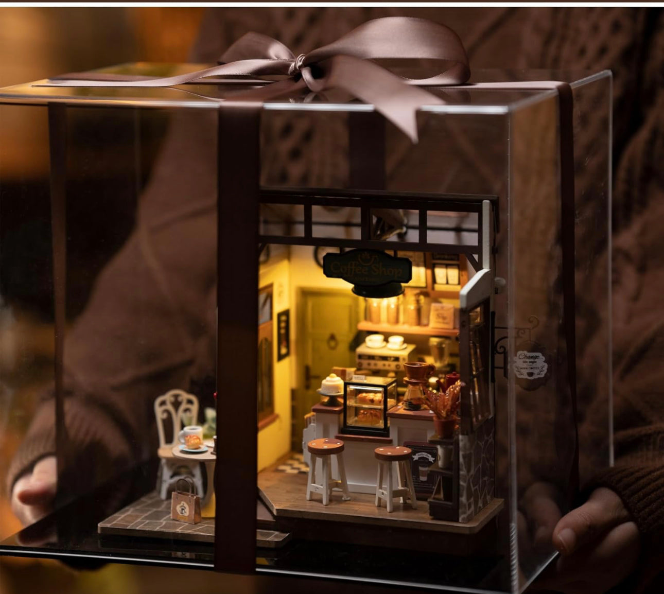- Café Rolife NO.17: este kit de casa de muñecas en miniatura se basa en cafeterías reales, con una escala de 1:20. En comparación con las mini casas anteriores, hemos añadido más piezas de plástico y madera para reducir el tiempo de montaje.
