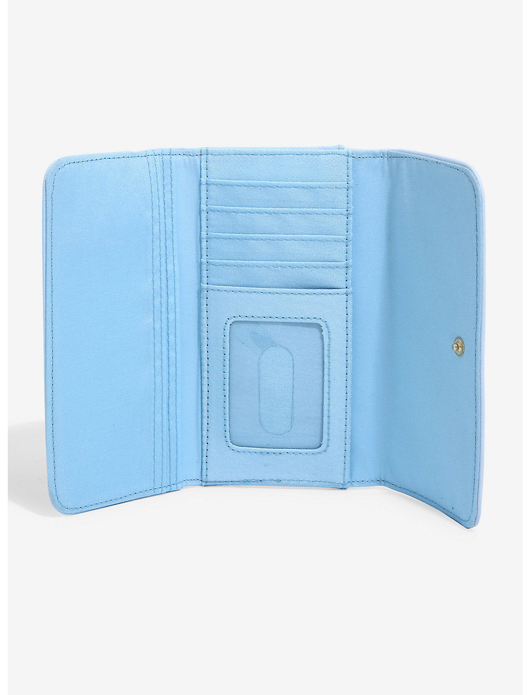 Bibbidi-Bobbidi-Boo! ¡Oh, tenemos una billetera para ti! Cuenta con una versión chibi de Cenicienta con Jaq y Gus-Gus en el frente con detalles florales. Pantalla de identificación clara, 4 ranuras para tarjetas y 3 billeteras. Cierre con botón a presión.