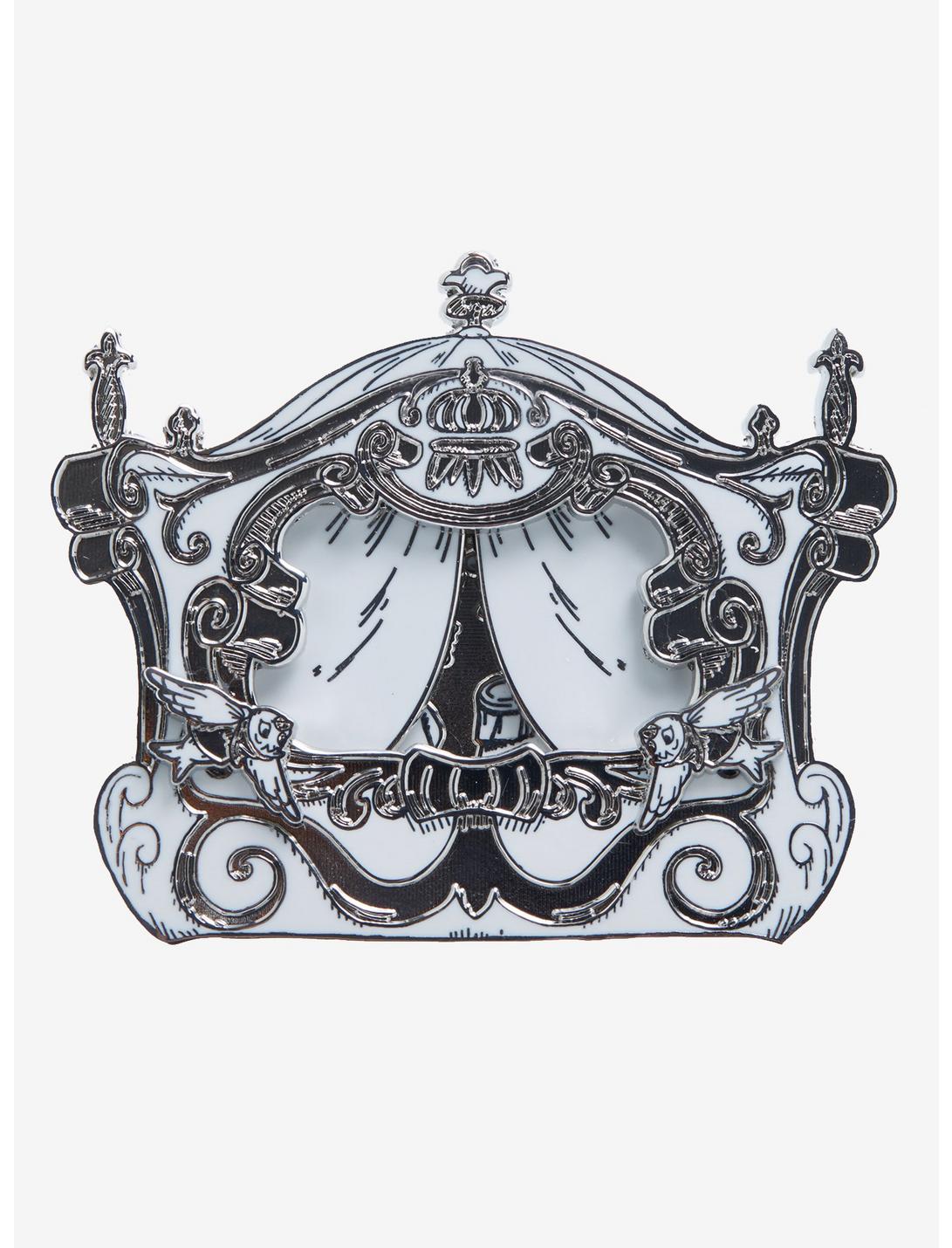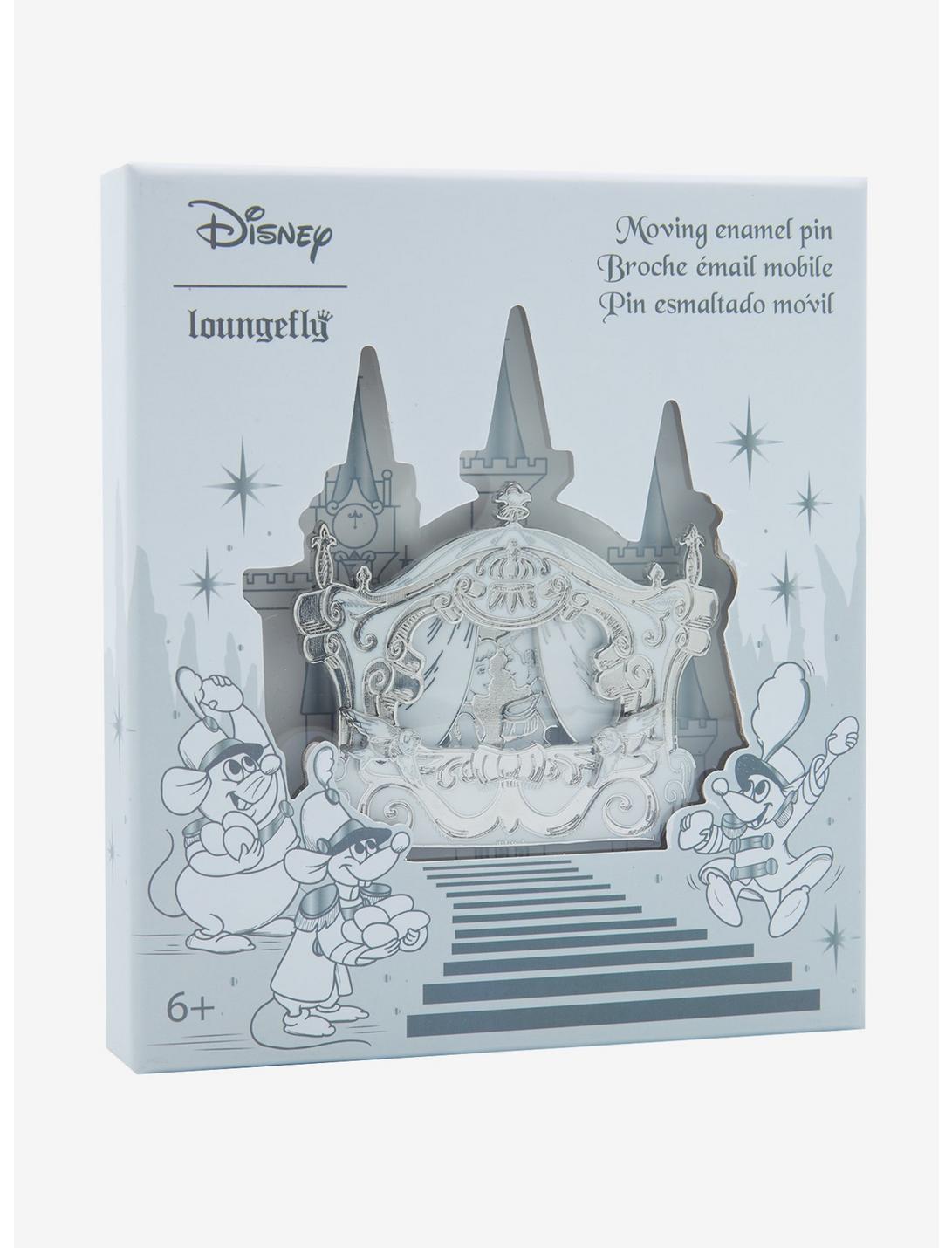 ¡Celebre un felices para siempre con este pin Loungefly de edición limitada! Este prendedor esmaltado inspirado en Cenicienta presenta a Cenicienta y al Príncipe Encantador en una versión plateada y blanca de su carruaje nupcial con cortinas en movimiento para agregar algo de variedad a su mochila, chaqueta o panel de corcho.